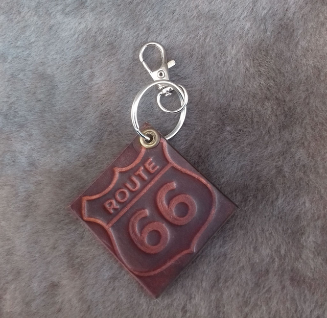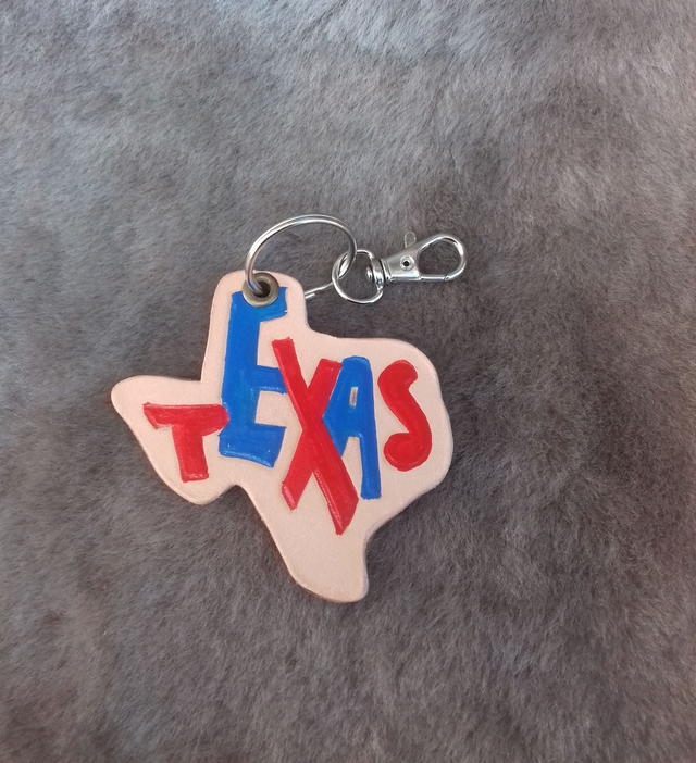 Porte clé en cuir tannage végétal teinté ou peint et texturé sur le style américain.